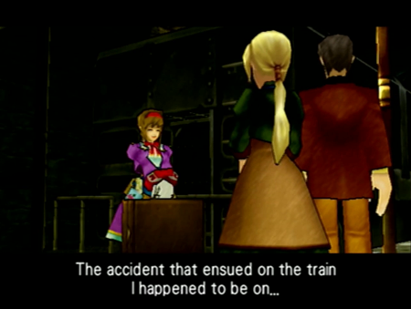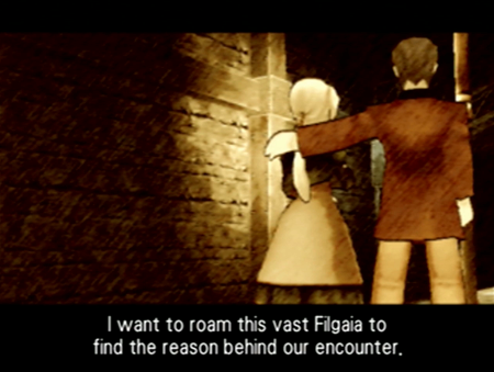 Around and around we go…The world that encircles me begins to revolve…The gears grind, and the spinning wheels of fate begin to turn…And finally, the train departs. A journey without a purpose. The train just steams away to the world beyond today. The accident that ensued on the train I happened to be on…And the three strangers I would later encounter…These were all coincidences. But if coincidence is a part of fate, I want to roam this vast Filgaia to find the reason behind that encounter.