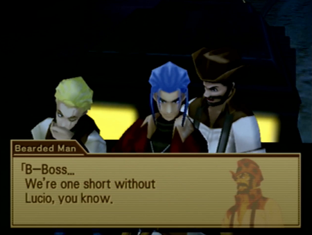 The ol’ official website had this piece of art, and it is consistent with some background comic that appeared in the Japanese exclusive Wild Arms 3 Complete Guide. Lucio is the redhead with the halo, obviously. So, basically, what I’m saying is we could have also been fighting a guy that can’t button his shirt to match the man that can’t button his pants.