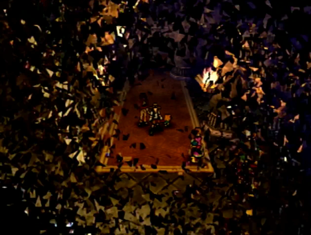 Oh, and speaking of gameplay, guess who has come to congratulate us.