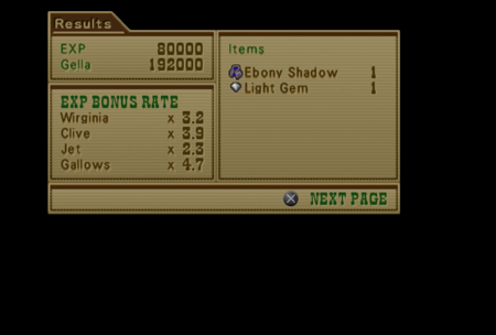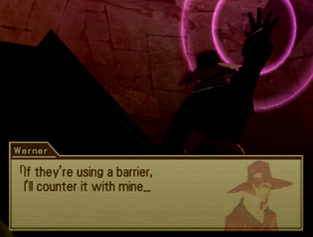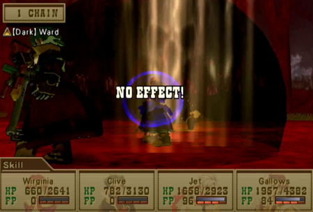 Beyond that, Ebony Shadow actually working is based on a FP/PS point ratio. If you only devote one PS point to Ebony Shadow/Arcana Blocker, it will only work when your FP is at 100. If you provide the maximum four PS points, it will block anytime you have 25 FP or more… which is practically all the time at this point in the game. There isn’t a detailed explanation of this effect in Wild Arms 3, so if you don’t think it’s working, there’s your answer.