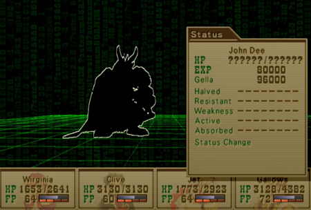 So what’s the trick this time? Well, John Dee has an AI quirk wherein if you buff your party in any way, there is seemingly a 75% chance he will use his turn to cast Eraser, the dispel spell of Wild Arms 3.