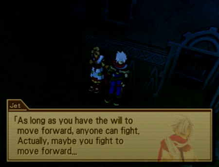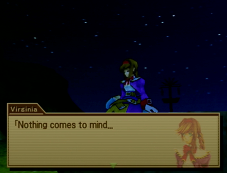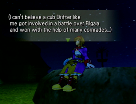 (I can’t believe a cub Drifter like me got involved in a battle over Filgaia and won with the help of many comrades…I fought to save the world…Maybe it’s natural that it doesn’t feel real…I mean, this was like a fantasy straight out of a picture book…)