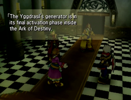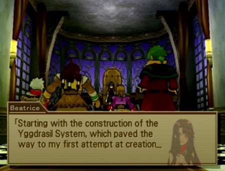 You know what would have been cool? A scene where Lamium actually receives the Yggdrasil generator from Beatrice. Or maybe Lamium reporting that he found the generator thanks to a dream? Something like that? Then we would have a transition of sorts between everyone in the Ark being a bunch of loons and their right-before-the-finale conviction that they’re about to lift off into space. It would work really great for the dramatic irony of the protagonists and audience knowing damn well where Lamium got that generator, and a hint as to what Beatrice was up to.
