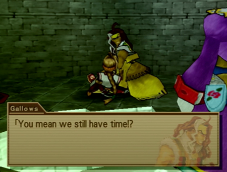 Sleep is really annoying in this fight. This is a shot of Gallows, the only one with a sleep ward, starting the process of waking everybody else up.