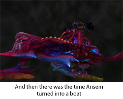 Air Boat?Roxas is now trapped in The Matrix by DiZ and Dark Ansem-Riku. Roxas realizes he’s The One after a very exciting essay on “what I did on my Summer vacation”, and then pretty much ceases to exist just in time for Sora to come back to be the hero. The remaining members of Organization XIII go stomping around the universe, generally stirring up trouble, and Sora beats them down in turn. Finally, Nobody Xemnas reveals himself as being behind everything, and it’s all another ploy to create Kingdom Hearts, or find Kingdom Hearts, or something or other. What’s important is that DiZ, aka Ansem the Wise, sacrifices himself to transform Dark Ansem-Riku back into Shadow the Hedgehog Regular-Riku, and then Riku and Sora just straight up murder Nobody Xemnas, because he didn’t have a heart anyway, so it’s okay. This means that, finally, the last Ansem is dead, and the galaxy is at peace.