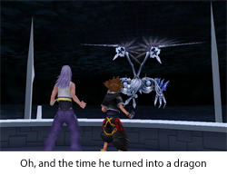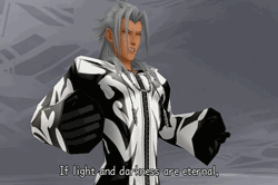 You're gonna be eternal, all rightExcept not so much. Death in the Kingdom Hearts universe is kind of confused: If someone is split into a heartless and a nobody, and then the heartless and nobody are killed, it becomes some kind of double negative thing, so the original “person” comes back to life. In Xehanort’s case the whole of the universe had a compile error or something, and it spat out another twelve or so Xehanorts. Seriously, Old Man Xehanort came back to life, and then used previously-never-mentioned time travel abilities to stock his all-new, all-better Organization 13 with at least four other versions of himself (“himself” now being a word that has absolutely no meaning). Two other Org XIII members are hangers on from the last Org, and the other six are mysteries because we’ve gotta have something to speculate on before the release of Kingdom Hearts 3. Xehanort (the young one, I think) tried to possess Sora and make him member #13, thus joining the great line of Too Many Soras with The Ansems All The Way Down, but he failed, as Xehanorts are want to do.