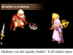 Favorite character: Either Kyle or Jessica, as they’re kind of a duo. Jessica might win just a little bit for being a violent white mage, but Kyle is such an… idiot that he’s hard not to like.- Not Ghaleon? No, not Ghaleon… Magic Emperor Ghaleon!