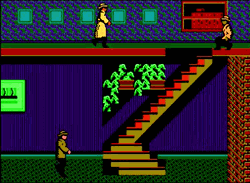 And this wouldn’t be so bad if the game was remotely “fair”. The previously mentioned snipers are effectively invincible, which I suppose makes perfect sense when your only option is to shoot out the window of your moving car, but it translates to “drive by a sniper, get shot a bunch”. Dick Tracy doesn’t have any amazing psychic powers (this week), but you better hope you do if you want to drive to even the first building with your health intact. The ruffians occupying the building/action segments of the game aren’t much better. Unless you want to creep along as Dick Tracy: Snail Detective, you will be shot repeatedly by hooligans with guns juuust off the boundaries of the screen. Tracy does have the ability to angle his shots up for enemies on a different floor, but it’s at the exact same angle his adversaries can angle down, so prepare to take another bullet to the brainpan.