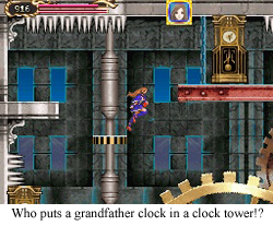 Iga’s premiere, Castlevania: Symphony of the Night, radically changed the formula by focusing on a Belmont’s supporting cast member. Alucard, star of Symphony of the Night, had previously appeared in Castlevania 3 as one of Trevor’s possible traveling companions, along with Sypha and Grant DaSuppaNasty. Castlevania games had a tendency toward supporting casts, but the best way to summarize their involvement is likely to just point out that a lot of people played the hell out of Castlevania 3 and were never even aware of Sypha’s gender. What about Grant? What are Grant’s hopes and fears? What specifically happened to his family and his people? Why did he take shelter in a clock tower? Is he at all embarrassed climbing around like a common simian? Castlevania 3 doesn’t care to answer these questions, and stop being introspective, these skeletons aren’t going to whip themselves.