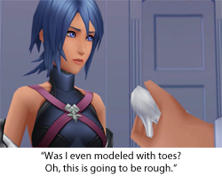 I also feel like I should mention that in KH: 358/2 Days, a game that features a nobody that is such a nobody that it has become his title, Roxas, seems to feature the least Disney presence, with characters like Aladdin and Beast pushed well into the boundaries. KH: Birth by Sleep similarly features a cast of three newcomers, and the Disney protagonists encountered throughout that game are either pre-assembled super light on characterization (Cinderella, Snow White, and bonus points if you can actually remember Sleeping Beauty’s name), in a pupa state (Young Hercules, Peter Pan pre-Wendy), or, in one case, pre-verbal (Stitch, pre-Lilo).