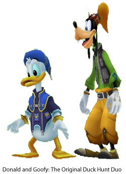 Donald and Goofy kick into high gear for Kingdom Hearts 1, where they are sent on a quest to assist Sora with that whole “save the universe” thing. Technically, they’re following the keyblade, and whoever wields the keyblade, so when Riku steals Sora’s keyblade for a hot minute, Donald and Goofy begrudgingly follow Riku. Then they get over it, go running back to Sora, and all is well.