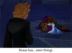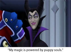 Sora and Riku are the only playable characters in Kingdom Hearts: Dream Drop Distance, so Donald and Goofy have to busy themselves with King Mickey when Maleficent invades Disney Castle. In an event that you’d think would be interesting enough to warrant some gameplay, Maleficent nearly gains the upper hand over the three toons that have proven to be practically invincible in the past, and (ugh) Axel saves the day. Shortly thereafter, Mickey, Donald, Goofy, Axel, and Riku have to rush in and save Sora from almost certain Xehanort bumbling.