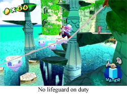 • Dozing offMaybe actually talk about the game for a second? Isle Delfino might be an appalling vacation destination, but it’s a wonderful place to set a Mario game. I acknowledge that Sunshine is not the best of the Mario oeuvre from an objective perspective, but, to me, it’s one of my favorite games to just pick up and play and run around and just have fun with various FLUDD nozzles. If Nintendo ever breaks out some kind of virtual reality/holodeck hardware, this would be the first game I’d like to just be “in”.