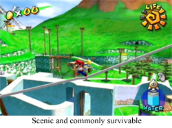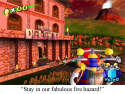 Isle Delfino doesn’t have to just rely on tourism, as it contains a booming shipping port at Ricco Harbor. This is great for Isle Delfino’s residents, but maybe not so great for visitors. I can’t imagine the joy of finally securing a room at Hotel Delfino, only to be awakened by a tanker’s bullhorn as it pulls into port at dawn. There’s also a juice bottling plant in the area, which, assuming it’s low on emissions, isn’t too terrible… until you remember that this kind of thing attracts the unique, tropical, water-solvent Yoshi tribe. Which horror would you like to explain to Little Timmy: “Yes, Timmy, all of our food and possessions have been eaten by a rampaging lizard,” or, “Sorry, Timmy, sometimes loveable dinosaurs just dissolve into oblivion on contact”? Either is a conversation you get to avoid when you just go to Disney World, where enchanting characters rarely die screaming.