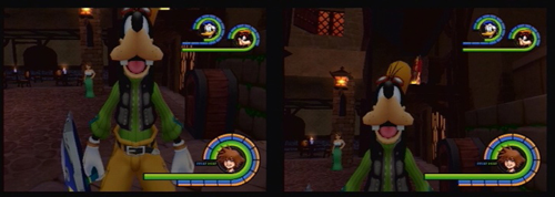 Kingdom Hearts is a fun game first and foremost, like every other game in the series, excluding a few outliers that have unbalanced robe-to-fun ratios. Kingdom Hearts also has a lot of problems. First and foremost, it was released back in the day when camera control was a secret technique closely guarded by jealous and vengeful turtles from the heavens. Kingdom Hearts doesn’t even have the ability to control the camera via the right thumbstick in its original incarnation, only L2 and R2. This leads to a lot of “free looking”. And, unfortunately, Goofy ain’t helping.