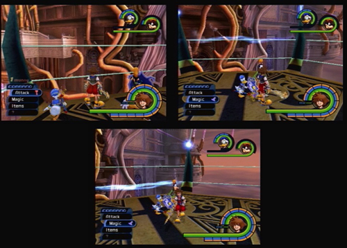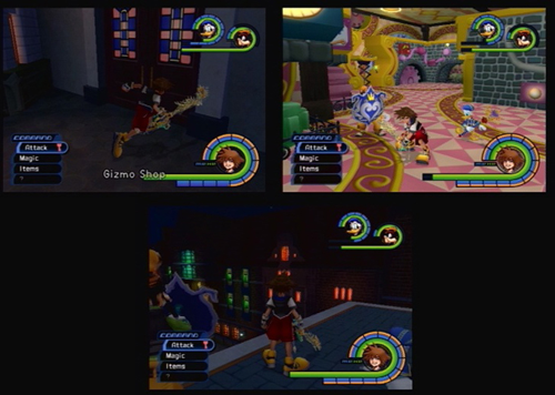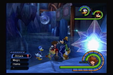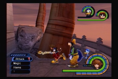 The magic system of Kingdom Hearts is the dumbest it has ever been in the series, as a clear cut “MP gauge” doesn’t so much work that well in this action setting. And “Aero”, commonly a wind-based offensive spell, is, for some unknown reason, a “Protect” spell that increases defense. That has nothing to do with anything, but has always bothered me. Beyond even that, there are just a number of little interface issues that make the game a little more annoying than it has to be, and the majority of these issues were corrected in later installments.