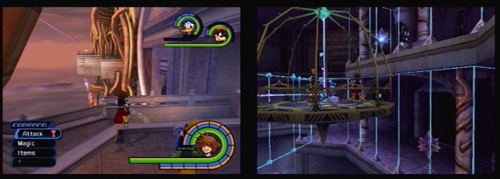 Kingdom Hearts 2 focuses primarily on Sora’s combat abilities, and leaves everything else by the river to drown. This is not a bad choice, as the combat of Kingdom Hearts pretty much is what people showed up for, but it turns the game into a series of “arenas” and corridors instead of proper “worlds”. Even Sora’s advanced traversal skills are locked behind a quizzical limit experience system, and thus become completely optional; obtaining the Glide command in this game is so ridiculously complicated, I doubt most people ever know it’s there, even when finishing the game to completion. With the advanced movement skills becoming entirely optional, the game is based on a Sora that only ever can jump poorly, and is poorer for it.