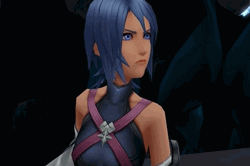Kingdom Hearts Birth by Sleep is the big prequel in the history of the Kingdom Hearts franchise, and it features the first (real, with a plot) female playable character, Aqua. Aqua is one of three keyblade disciples, the other two are boys, Ventus and Terra.