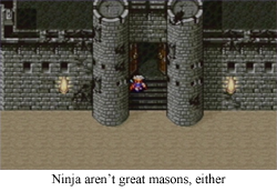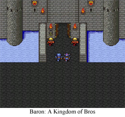 In another post that will eventually surface on this site (retroactive edit: here it is), I noted that Rosa is possibly the worst, most damsel-y woman to ever be playable in the Final Fantasy franchise. I now apologize for that assessment, as, apparently, Rosa’s hot white mage bod is the only reason Fabul survived the Golbez war. Fabul could have been bombed into a crater to match Damcyan, but, no, Baron decided on a costly direct assault entirely to kidnap Rosa (and maybe taunt Cecil a little). Fabul loses its B-team and Wind Crystal in the battle, but at least it stands to raise a whole new generation of equally ineffectual karate men because Kain couldn’t keep it in his armored pants.