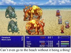 No beach babesYes, as the credits roll on Final Fantasy 4, Cecil has been crowned King of Baron, with Rosa at his side as his queen. This is… kind of odd, as there’s an entire Baron Army that Cecil just spent the last few days slaughtering, but let’s say they were mind controlled or something. Then there’s the small matter of Cecil having absolutely no governing experience, and this whole mess got started because Cecil was taking orders from a colossal, blue shellfish. But, sure, Cecil rules Baron now. Not like Cid would have been any good on the throne, and the rest of the populace barely has names.