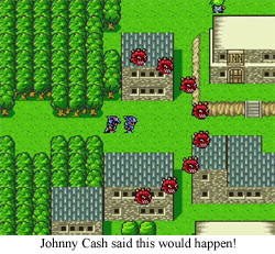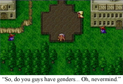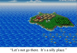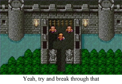 Seriously?Speaking of places that survived a Baron onslaught, we’ve got Mysidia. Mysidia appears to be the Vatican City of this planet, the religious hub that’s full of philosophers and bearded guys that think they have a handle on things but never wind up doing anything useful. Mysidia is filled to the brim with potentially powerful mages, which may be why Mysidia is the only place that holds a crystal (the Water Crystal, if you’re keeping track) but hasn’t decided to build an entire fortified castle. On the other hand, Mysidia lost its crystal to Baron when Baron only had the Red Wings commanded by Chief Wimp Cecil, who didn’t even try to start the whole battle off with a firebombing salvo. Man, Cecil even took prisoners during the battle. Ugh! Anyway, Mysidia had one thing to offer the world, and Baron came and took it with barely a fuss. Now, its only export is self-improvement seminars.