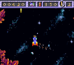Izzy has one other arrow in his quiver, and it’s the amazing power to turn into the Olympics. Well, nothing quite as amazing as that sounds, simply the ability to morph into various 2-D interpretations of Olympic events. “Fencing” creates a straightforward, sword-adept Izzy, while the shot put is swung over Izzy’s head to create a helicopter effect. There’s also a skateboard, because it’s a 90’s platformer, and the rocket transformation, because… someone on the team liked autoscrolling bonus stages? Was there a “space” component to the ’96 Olympic Games? Could… could someone look into that? Could someone make that happen?