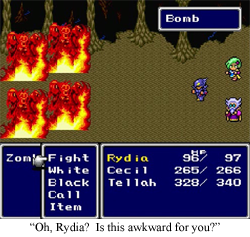 Which is why I have to look so critically at Final Fantasy 4. Palom and Porom are a duo, first and foremost, and while Porom is another damn white mage, her attitude and general authority over Palom makes her a memorable character for her limited time with the party.