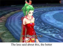truly consider the ramifications of WMDs (Weapons of Magical Destruction), and using them on an unsuspecting populace. Yes, Ashe could nuke the final boss from orbit, but would that be the right choice, morally and politically? In short, Ashe is one of the first, true women characters in all of Final Fantasy, as opposed to the parade of girls that have shown up before. Go have your crazy freakout time in the corner, Dagger, the adults are talking.