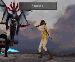 Kaipo as Cecil, but somehow contracts a nearly incurable disease in the process. She participates in the invasion of Fabul with the rest of the party, and is kidnapped for her troubles. She is continually mentioned as the main reason Kain jumps around the hero/villain spectrum, because women are a commodity for men to fight over. Even in battle, her “Fight” command is never used, ever, as she requires “Aim”, because silly girls can’t even fight right. And, somehow, against all logic and reason, she’s even worse in The After Years, where she fails to excel as a unique white mage among the cast of hundreds and is kidnapped yet again. Rosa, please accept your least improved damsel award and get off the stage.
