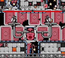 Spider-Man is stuck in a half constructed cityscape. Basically there’s a lot of asbestos and girders kind of haphazardly slapped together. I think Arcade didn’t so much create a maze here as get drunk and flail around a map editor. Actually, according to the (sparse) storyline, Spider-Man was the last of the gang to stop by Arcade’s place, and was only captured at the last second while attempting to rescue Gambit of all people. I suppose his precognitive spider sense, his singular trademark mentioned in nearly every pop culture reference, was on the fritz. So Spidey must make amends for his capture by battling random robots and, finally, the Shocker and Rhino, two Marvel villains so low on the totem pole that they didn’t see the big screen until Spider-Man 5: Spider Five. Doctor Octopus, Green Goblin, Lizard, Venom, no, they all had better agents, Spider-Man gets to take out the F-string for his climatic battles. Boo. Carnage also kind of shows up, but he’s portrayed as a weird leaping red thing, so there are about equal odds that “Carnage” is actually a red yoshi.