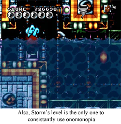 - Development Guessing: I refuse to believe this game happened by anything other than accident. Aside from the obvious lack of credits, the way the game can’t even retain a consistent life meter between stages seems to indicate that this thing was pulled together from disparate pieces and slapped into a final product. Storm and Gambit are basically trapped in entirely different genres.