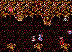 • Did you know? The first four bio-noids, bosses of Ninja Gaiden III, are all supposed to be themed after the four elements. The first uses a fire attack, the second is a flying monstrosity, the third are a pair of clearly aquatic ninja turtles, and the fourth has mole-sensibilities with his digging attacks. You could even claim the fifth boss is “heart”, as he’s a clone emulating the attacks of a human. And by their powers combined… you fight a supposedly invincible zombie in the sixth stage? Eh, let’s say the later bosses are the elements of death, heaven/hell, and spaceship.