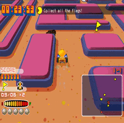 Rally-X Remix doesn’t fare much better. Rally-X sounds like a racing game, but it’s much more like a maze game: you direct a little go-kart fellow in an overhead viewed world toward various flags that will now forever be known for their inclusion in