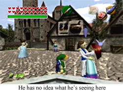 Considering adults were likely as alien to young Link as titanic flying pineapples, it’s no surprise that Link gravitated toward Princess Zelda. Princess Zelda, wise beyond her years but still a child all the same, set Link further on the quest already assigned by the Deku Tree. While legends have been told of the relationships between many heroes and Princess Zeldas, it would seem all but impossible for those legends to start here, as Zelda simply used Link as a proxy errand boy on her own quest to defend her kingdom. Perhaps, in another more peaceful time, these two children may have been friends or grown to be lovers, but here Link seems to have been chosen as randomly as any other person, and likely only earned his position by being in close proximity to the princess in a single moment. One would suppose that Princess Zelda, pampered royalty from birth, would know no other route to peace than to command her subjects, but it would be Link who had to suffer the bite of the keese, or the heat of a fireball. Note also that the Spiritual Stones that Zelda commanded Link to collect were in the possession of two other prominent tribes. If these tribes truly believed in Zelda’s ideals and wished to stop Ganondorf, they needed only to pool their resources in a traditional, democratic manor. Instead, Zelda, ever the monarch, sent a lone agent to obtain these items by any means necessary.