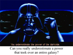 And, really, that’s why Star Wars can become a myth that will go on forever. Hero’s Journey, Western, Samurai Flick, Flash Gordon; wherever you want to place its origins, the original Star Wars is many things to many people because it is many things. Star Wars drew from many, many different sources for its final product, and the melting pot of themes and characters got a strew going that can appeal to practically anyone. We’ve got a whiny farm boy that turns out to be the savior of the universe for all you kids that scribble emo poetry on your Livejournal, there’s the cool jock that is just too good for all this played by a guy who is convinced he’s too good for all this, and a pretty pretty princess that is incidentally a blood-thirsty murderess/sex symbol for a generation. And on the other side of the aisle there is maybe the most iconic, menacing bad guy in the history of cinema, Grand Moff Tarkin, and also some dude wearing his finest funeral cape and a spray-painted samurai helmet. And then there’s Emperor Palpatine, the guy who had to be super-duper evil to stand over Vader’s