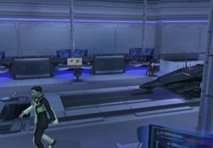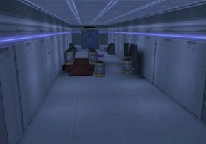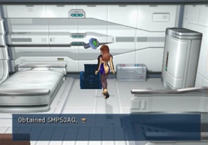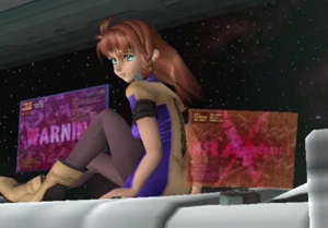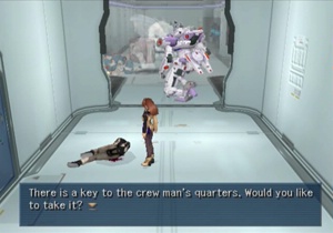 KOS-MOS doesn’t really give a damn, and pulls up her own private map of the area. It’s a really cool map, and it would just be, ya know, nice if the player got a similarly convenient map. Not that I’m bitter or anything. For those of you who don’t now have a photographic memory of the Woglinde, she’s zooming in on Shion’s room, and confirming that nobody’s home.