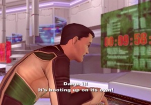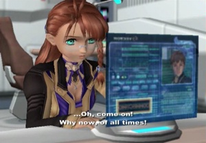 Shion attempts to contact the lab via the local phone system, but, since the ship is in emergency insanity mode, the comm system is overloaded and not working. The future!