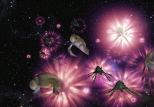 Alright, here’s the skinny on The Gnosis. First of all, the Xenosaga universe is meant to be “our” future, just a few millennia from now, and a side-effect of the “reality” of that is the idea that we’re alone in the ‘verse, so no aliens. Sorry, anybody hoping for a whacky little pink mascot creature is out of luck. That said, these guys look pretty damn alien, right? Their true nature is a big important secret of the series, so I’m not going to get into all that at the moment, but these guys are not so much meant to be “alien” as “magical”. I suppose I can divulge that it will be eventually revealed that these guys, in ancient times, were likely faeries, kappas, unicorns, or whatever crazy mythological creatures people have claimed to see over the years.