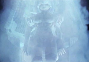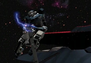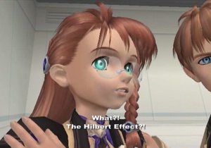 The Hilbert Effect, aside from just plain looking cool, drags all the neither-here-nor-there gnosis into our reality, so now we can hit ‘em but good. We’ll find other devices and people (“people”) capable of generating a Hilbert Effect throughout the series, but KOS-MOS is unique, as her ability allows her to do it over a much greater range than anyone else. Considering it affects the whole ship, and this would have raised Shion’s chances for survival no matter where she was, you have to wonder why KOS-MOS waited until now to use the damn thing, but, hey, maybe she’s just a dramatic robot.
