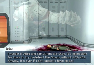 In the next room, Shion sees a crew member who didn’t have the good fortune to be standing next to a deus ex machine, and notes that she will have to avoid all other gnosis from this point on.
