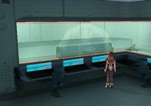 But anyway, no one cares about Allen, what’s important is that KOS-MOS’s space coffin has lit up. Good thing the lighting is so poor that we can see it easily!