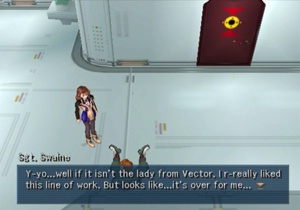 Shion attempts to dash down to R&D, but the blast doors close on her (emergency protocol), so, sorry, you’re going to have to take the long way around. Oh well, more of a walk, but that shouldn’t be much of an issue.
