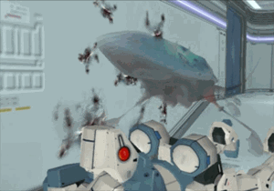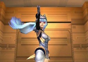 After the battle, there’s still a number of weaker gnosis floating around, so KOS-MOS does her best to exterminate.
