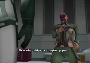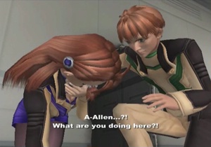 Allen follows closely behind KOS-MOS. He explains that he heard KOS-MOS utter Shion’s name, so he followed her like a damn dog.