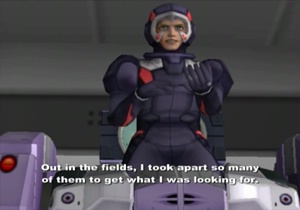 Had to throw off her helmet first, though. The first official unmasking of KOS-MOS would have a lot more impact if she wasn’t helmetless in her profile picture that appeared every time you opened the menu or won a battle during the game’s opening.