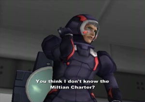 “You think I don’t know the Miltian Charter? Miltian Charter, Article Four, Paragraph 13… ‘Weapons-Grade Realians are required to be equipped with a remotely accessible behavioral limit and self-destruct system in case of emergency or malfunction.’ ‘Use of these functions will be determined by the senior officer in charge of the situation.’ …am I right?”
