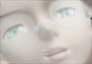 Yes, Shion has, like, future glasses. Rather than the stupid, analog glasses of the past, her glasses have to be charged, and are vulnerable to electrical disturbances. The future!