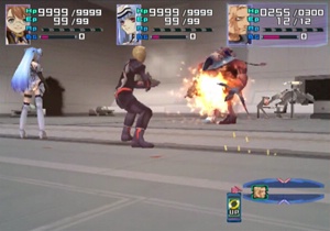 Virgil has pretty basic attacks, and that machine gun for anything long range. As you may expect, KOS-MOS is the main damage dealer for this battle (and most battles, she is a damn war machine).