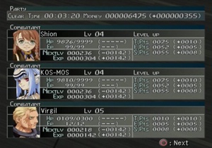 This is another limp boss battle. This time, there’s the big boss and two independent bits, and, of course, Virgil won’t be joining us, as he’s still bleeding out on the floor, but there’s not much to this one. The boss gives you a warning when it’s about to use its super attack, so attack and guard properly, and you could sleepwalk through this one. Shion probably is, actually.