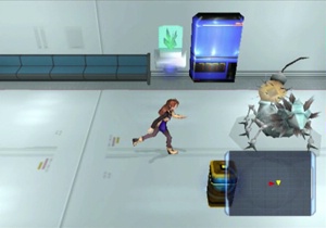 Hey, that jackass we played tag with is suffering for having inflicted such a crappy mini-game upon the player. Karma! He advises we run back into that other room and pick up the ability to blow stuff up.